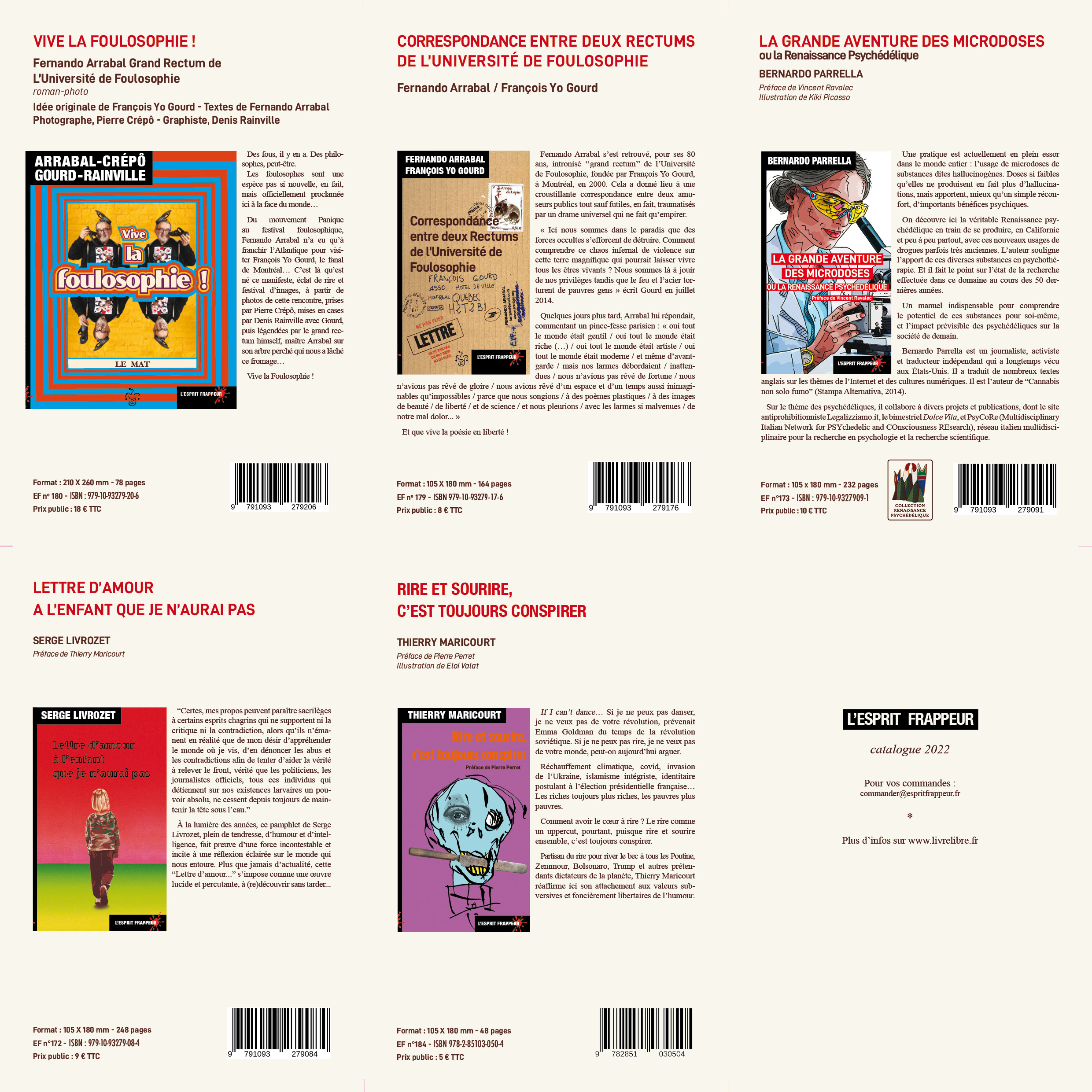 - catalog (fold-up leaftlet 140 x 210 mm) with 9 books I designed for l’Esrit Frappeur..